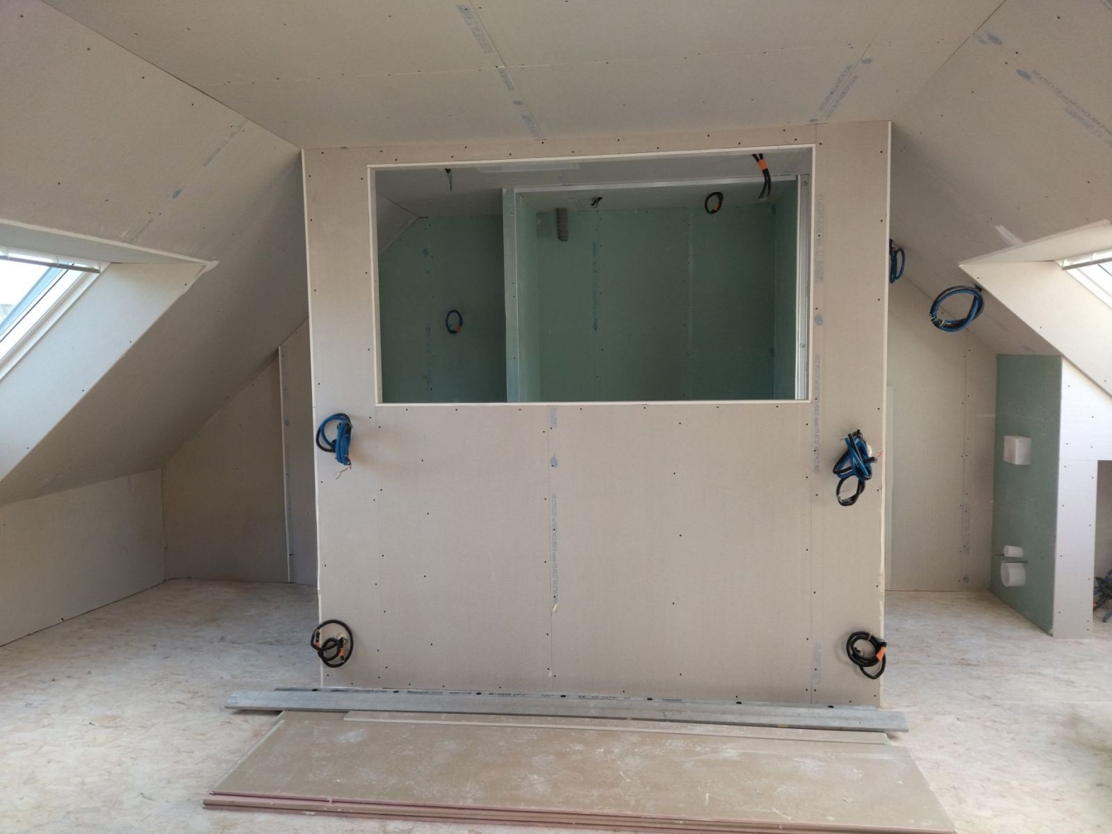 Une fois la structure stabilisée et isolée, nous créons des cloisons permettant d'organiser les volumes selon vos besoins : chambre, salle d'eau, rangement...