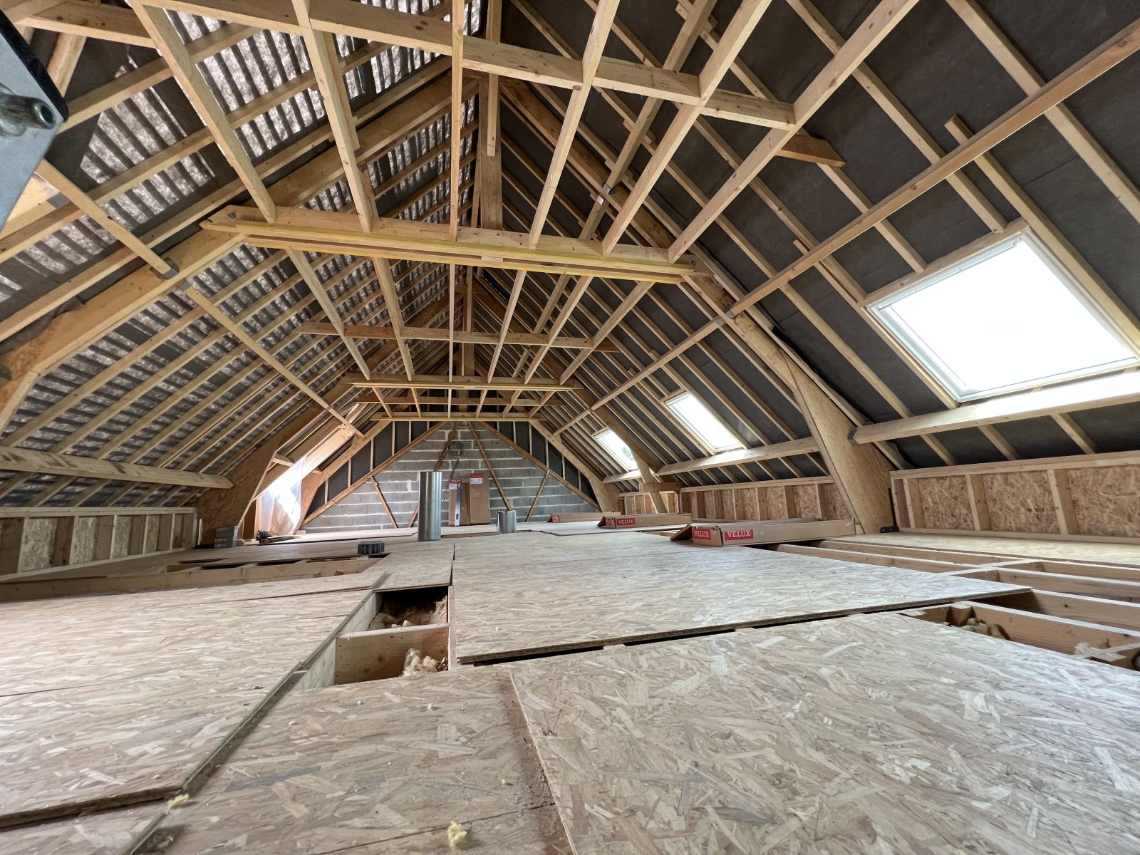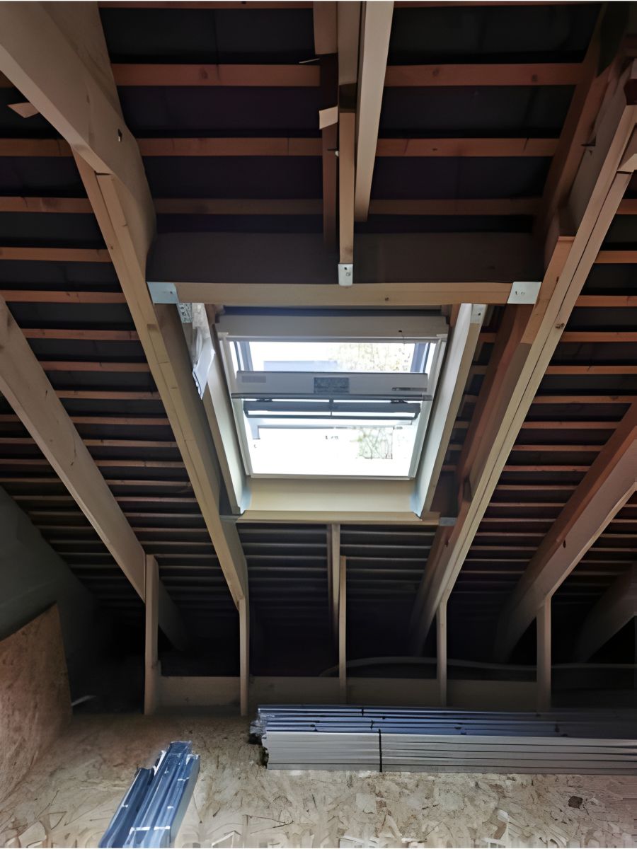 Nous installons des fenêtres de toit (de type Velux simples, doubles, avec meneaux...) afin d’apporter luminosité et ventilation naturelle aux nouveaux espaces. Leur implantation est étudiée pour optimiser le confort, les apports de lumière et la performance énergétique.