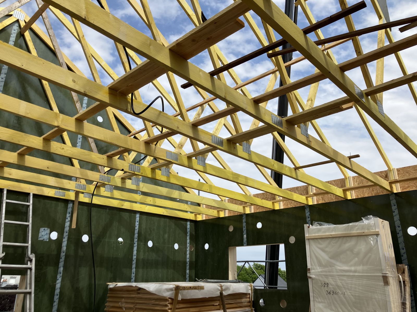 Nous réalisons ensuite les murs du nouvel étage en ossature bois, une technique reconnue pour sa légèreté, sa solidité et ses performances thermiques. Cette solution permet une construction rapide, durable et adaptée aux projets de surélévation.