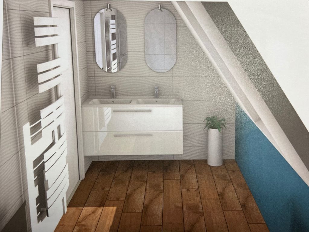 Dessin numérique fait avant la création de la salle de bain pour se projeter - douche et sèche-serviettes