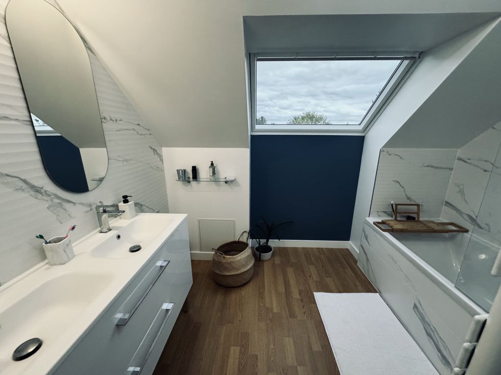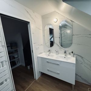 Dessin numérique fait avant la création de la salle de bain pour se projeter - lavabo, rangements et miroir