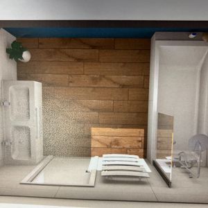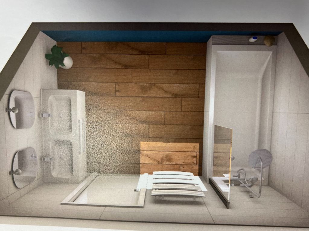 Dessin numérique fait avant la création de la salle de bain pour se projeter - douche et sèche-serviettes