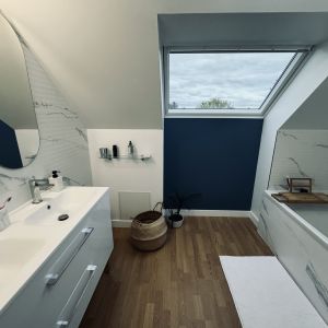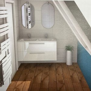Dessin numérique fait avant la création de la salle de bain pour se projeter - lavabo, rangements et miroir